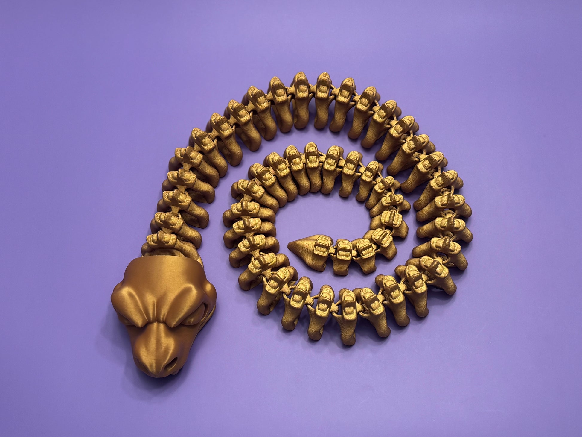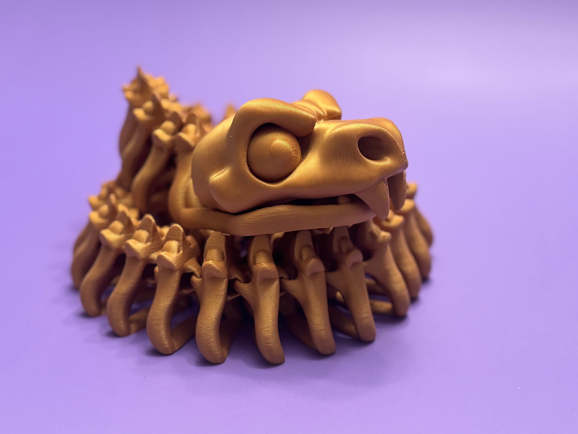 This Skeleton Snake is a striking 3D-printed piece that blends sleek design with eerie elegance. Crafted to resemble a snake skeleton, this articulated model features smooth, lifelike motion and detailed bone-like segments. Its haunting yet refined appearance makes it a standout addition to any fantasy or gothic collection.