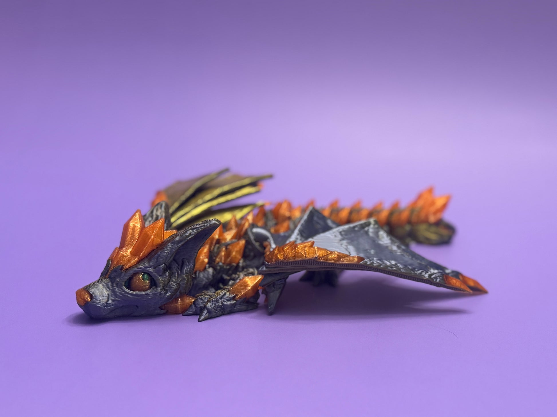 The Wolf Dragon embodies the perfect fusion of primal strength and mystical grace. This 3D-printed creation features the fierce stance of a wolf and the elegant form of a dragon, complete with articulated joints for smooth, lifelike movement. Its detailed sculpting captures sharp features, layered scales, and expressive eyes, while the metallic charcoal and fiery copper finish bring a bold, commanding presence to life.